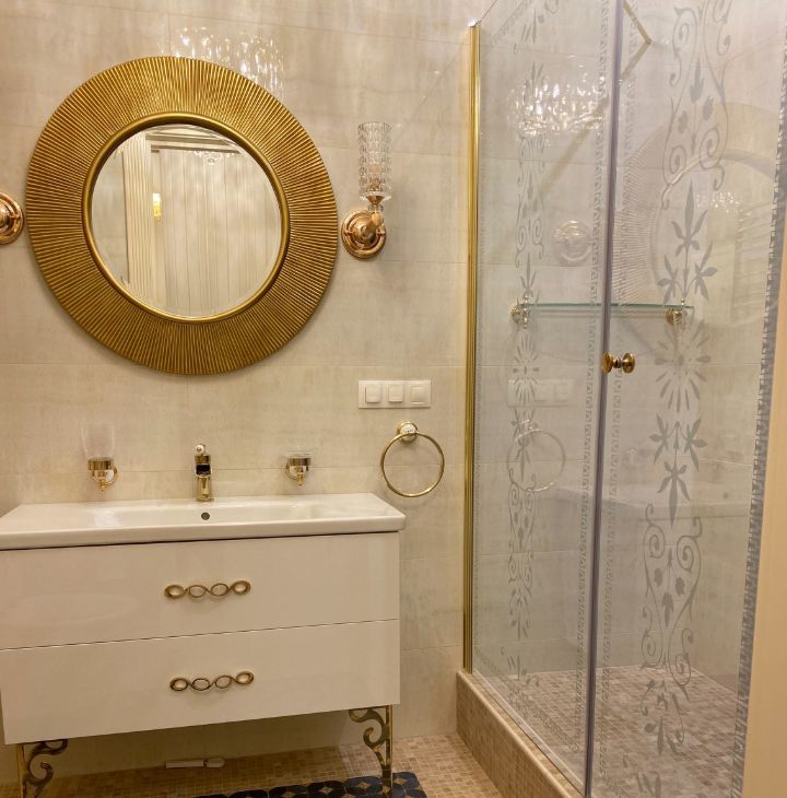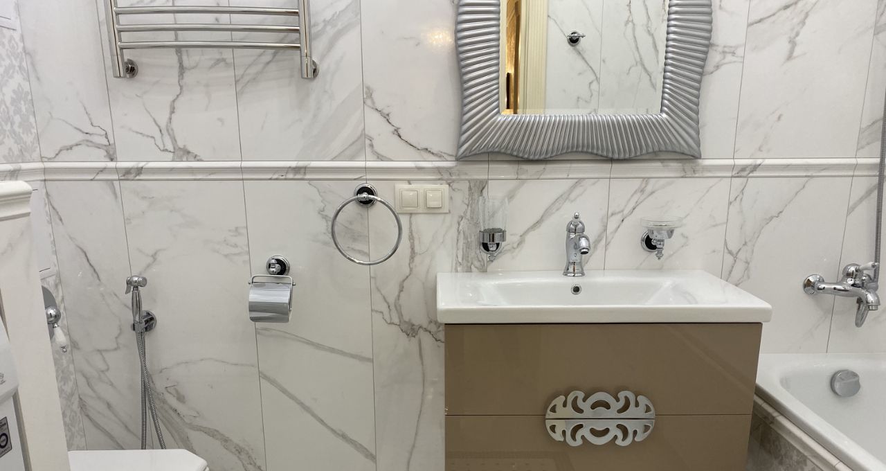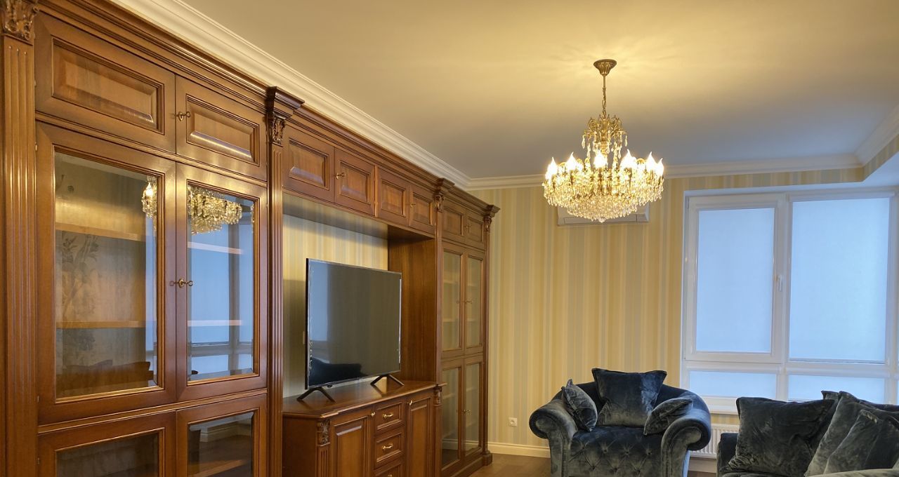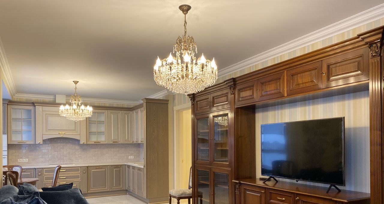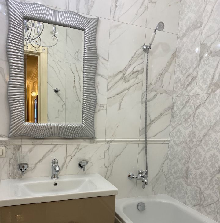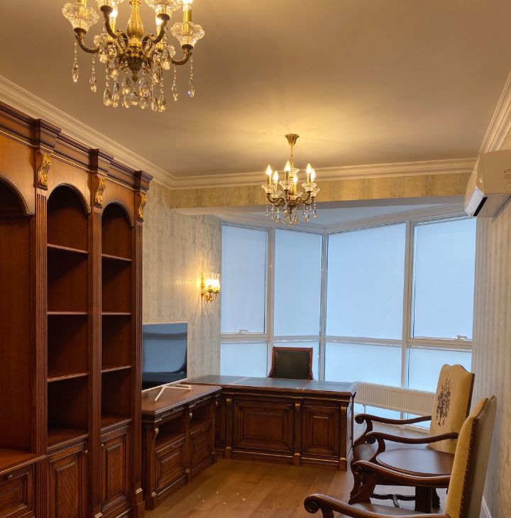 В квартире выполнен дорогой ремонт в классическом стиле с использованием натуральных дорогих материалов.