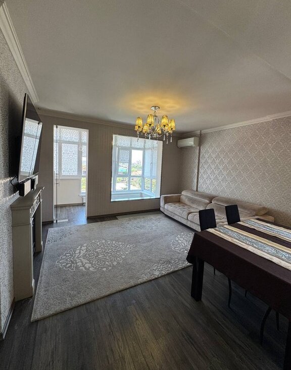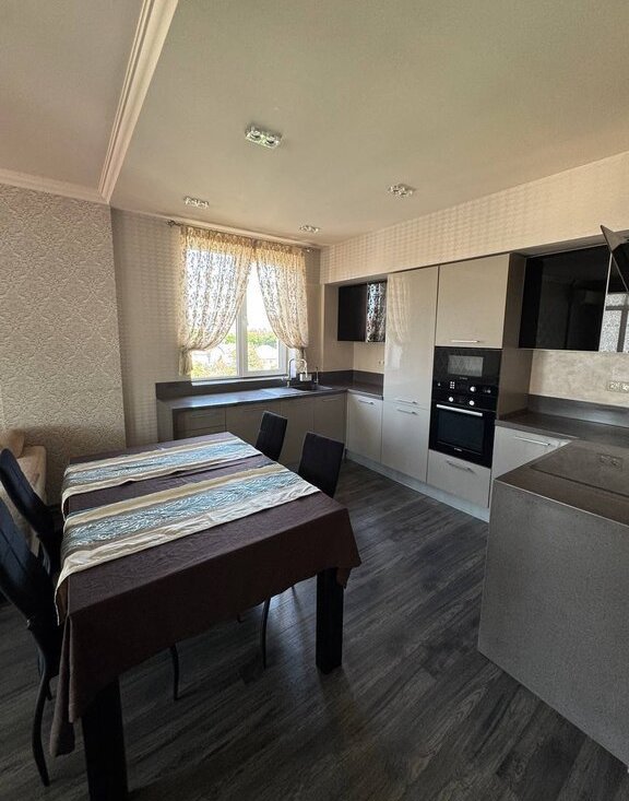 Сдается просторная 4-комнатная квартира с дизайнерским ремонтом, расположенная на 6-м этаже 10-этажного кирпичного дома, построенного в 2012 году. Общая площадь квартиры составляет 104 кв. м, высота потолков — 2.8 метра. Окна выходят на улицу, что обеспечивает хорошее естественное освещение.