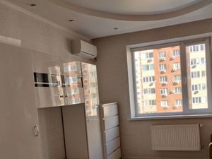 Сдается большая студия . В квартире сделан ремонт и есть все необходимое для проживания (новый холодильник, стиральная машина, духовой шкаф, телевизор, большая скрытая гардеробная)Возле каждого дома детская площадка. Всегда есть парковочное место . Закрытая территория. При желании можем убрать детскую кровать
