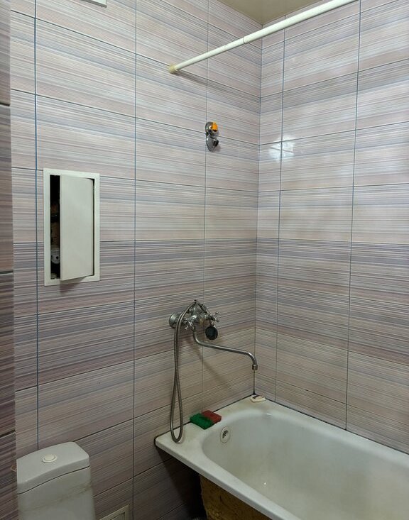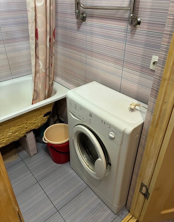 Кухня оборудована техникой, включая плиту и стиральную машину. Санузел совмещенный, оснащен ванной . Балкон застеклен, с видом на двор, где предусмотрена открытая парковка.
