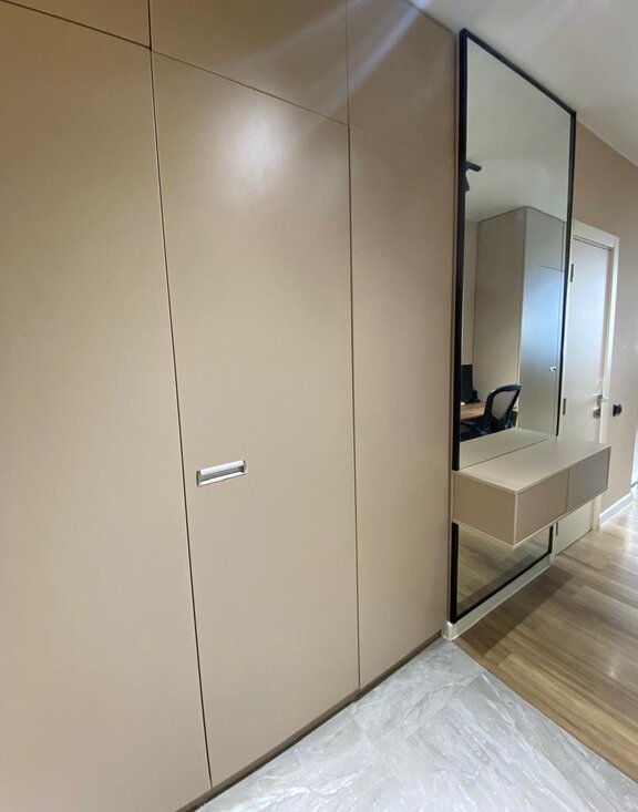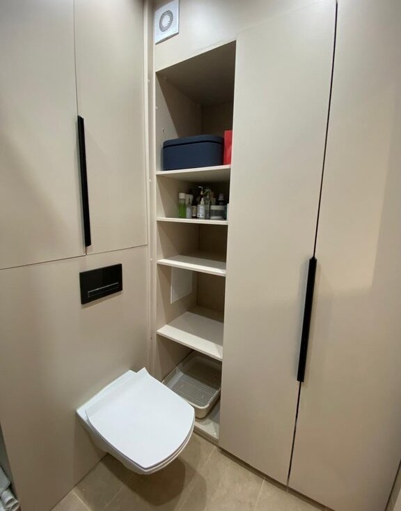 Санузел совмещённый, оборудован душевой кабиной и современной сантехникой. В прихожей есть вместительный шкаф для верхней одежды.