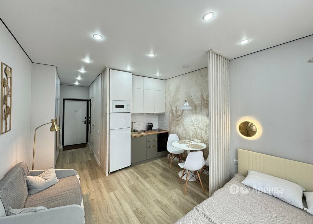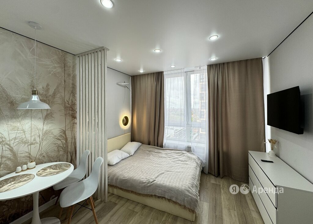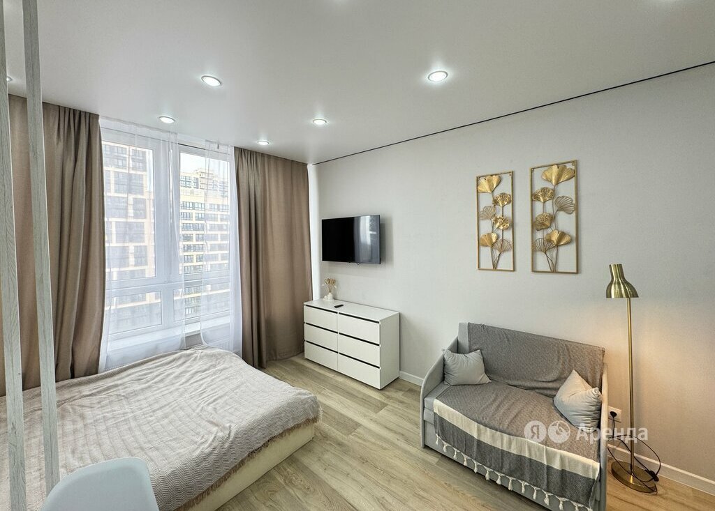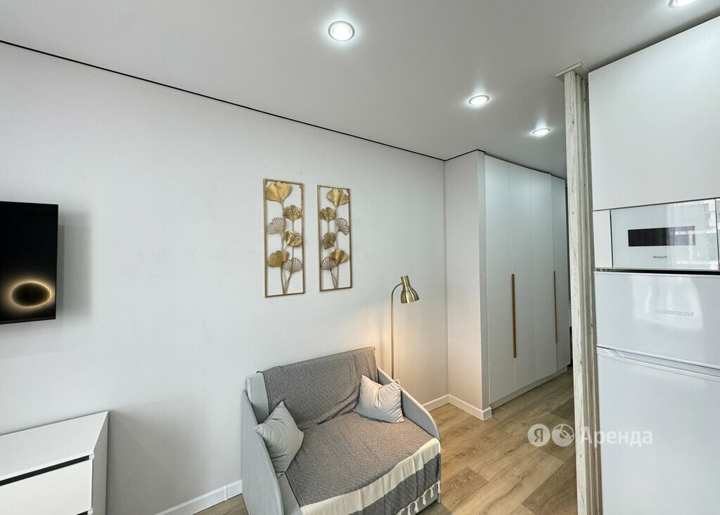 Сдаётся студия площадью 25 кв.м. с дизайнерским ремонтом на 13 этаже в 19-этажном доме на срок от 11 месяцев. Из техники есть: