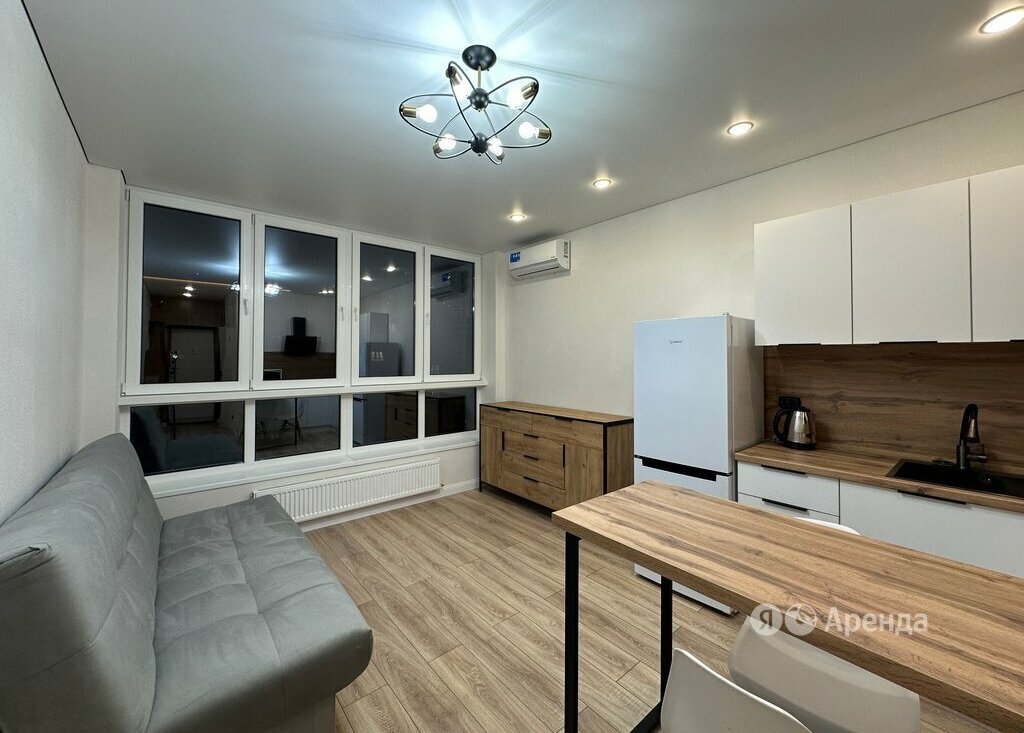 Сдаётся студия площадью 23 кв.м. с евроремонтом на 13 этаже в 22-этажном доме на срок от 11 месяцев. Из техники есть: