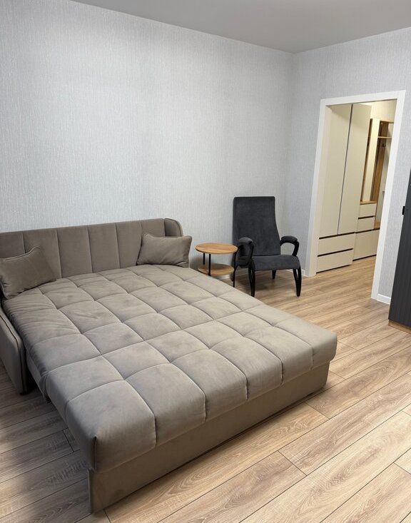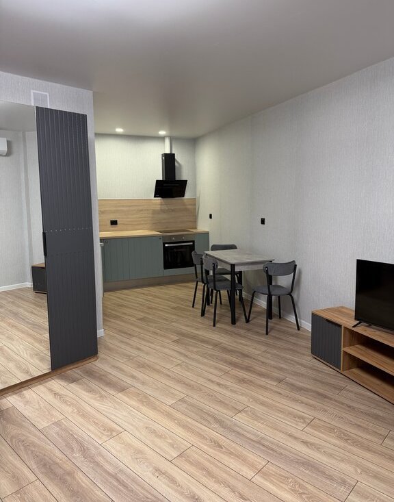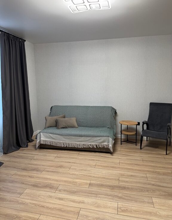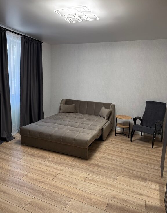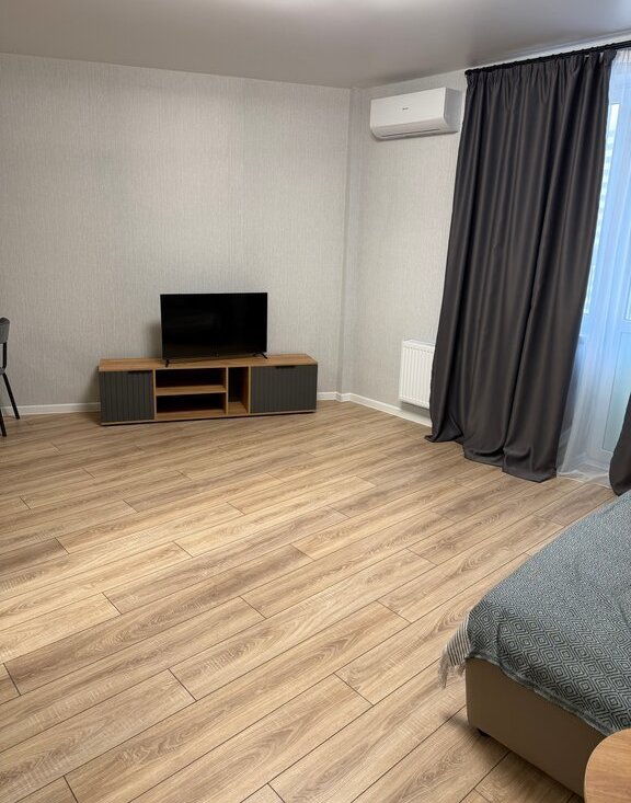 Светлая и уютная квартира-студия! Новый ремонт и абсолютно новая техника и мебель(холодильник в наличии). Вы будете первыми жильцами. Студия очень просторная, отдельная ниша для кухни. Имеется все необходимое для проживания. В жк установлено видеонаблюдение, во дворе игровые и спортивные площадки, в доме магазины, аптека. Все необходимое в шаговой доступности.