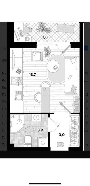 ❗️Жилая площадь-20,1 кв.м., с балконом - 23,9 кв.м.❗️