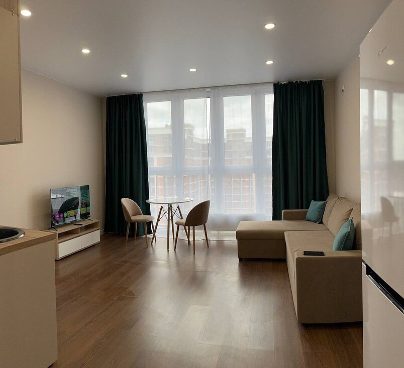✅Для комфортной жизни: шторы Блэкаут, удобный раскладной диван варочная панель, холодильник, микроволновка, Wi - Fi. Телевизор Smart диагональ 43 дюйма, стиральная машинка, полноценный вместительный шкаф с ростовым зеркалом, подушки, одеяло, постельное бельё, сушилка для белья, пылесос, вся необходимая посуда.