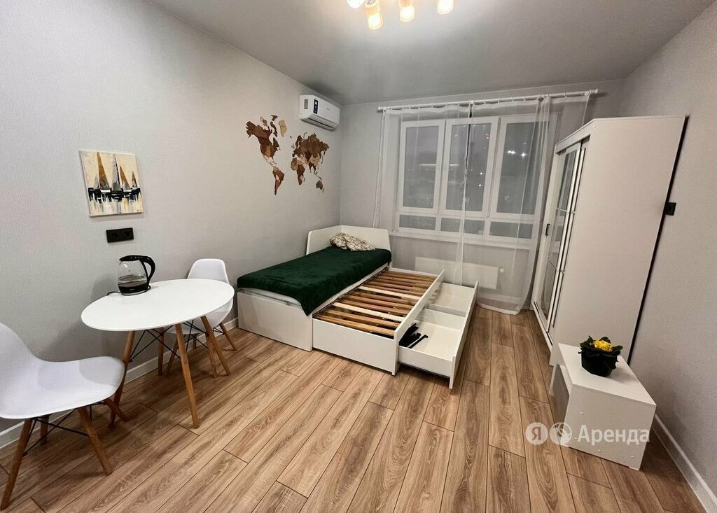 Сдаётся студия площадью 23 кв.м. с евроремонтом на 14 этаже в 16-этажном доме на срок от 11 месяцев. Из техники есть: