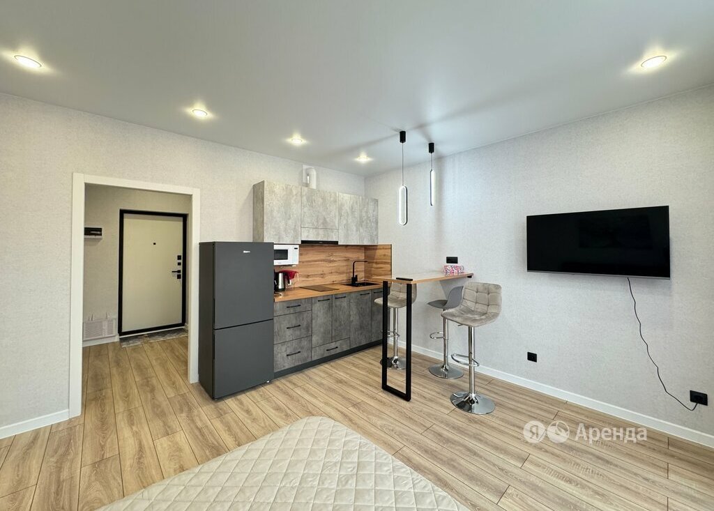 Сдаётся студия площадью 28 кв.м. с евроремонтом на 14 этаже в 16-этажном доме на срок от 11 месяцев. Из техники есть: