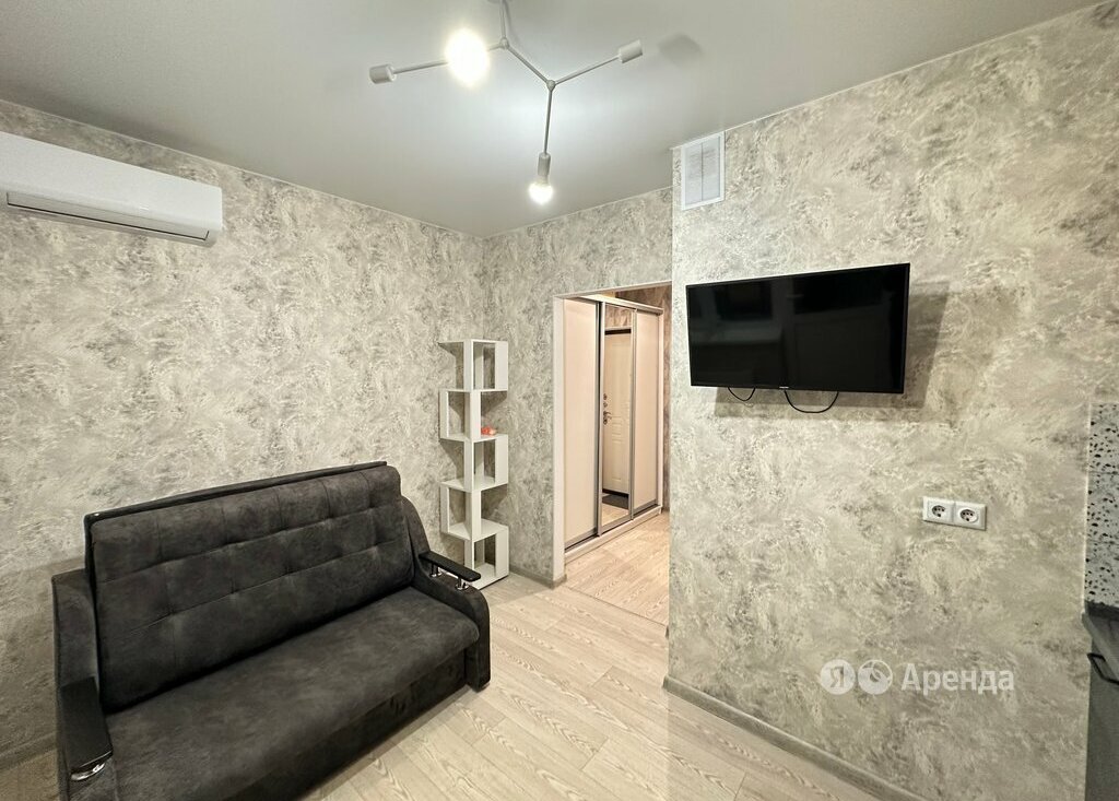 Сдаётся студия площадью 20 кв.м. с евроремонтом на 2 этаже в 19-этажном доме на срок от 11 месяцев. Из техники есть: