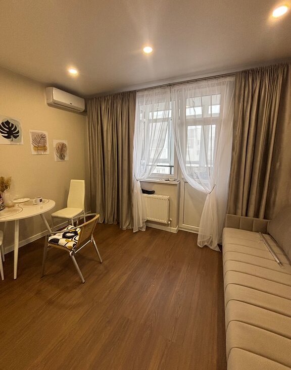 Квартира 21,7 кв.м. + панорамная лоджия 3 кв.м., солнечная сторона: оборудована всем необходимым для жизни: удобный 2-спальный диван, сплит-система, ТВ, стиральная машина, холодильник, СВЧ, варочная панель, пылесос и отпариватель. Посуда для приготовления и приема пищи, полотенца и постельное белье.