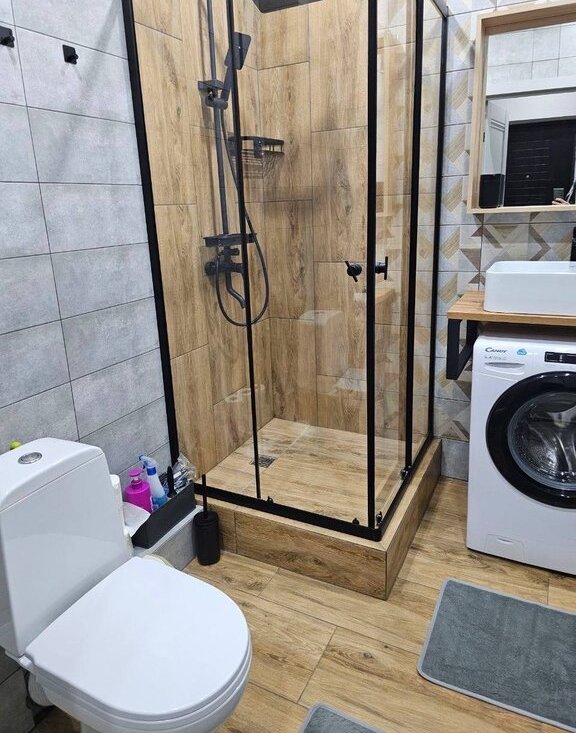 В квартире сделан евроремонт. В комнате и на кухне есть вся необходимая мебель. Для вашего удобства установлены кондиционер, холодильник, телевизор и стиральная машина. Совмещенный санузел оборудован душевой кабиной. Из комнаты есть выход на лоджию, где можно приятно провести время на свежем воздухе.