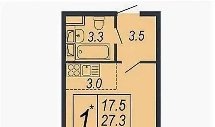 Студия Краснодарский край, Краснодар ул. Адмирала Макарова, 5к4 (28.1 м²)
