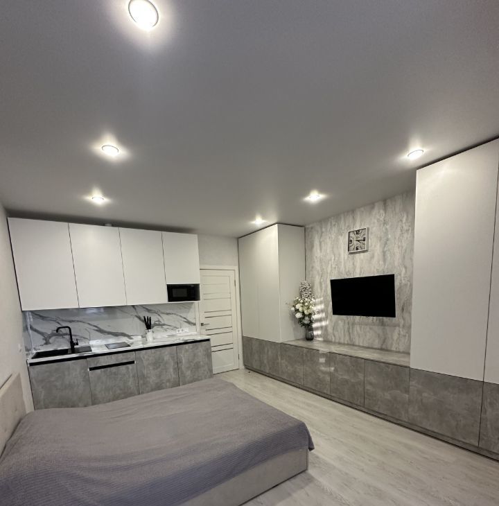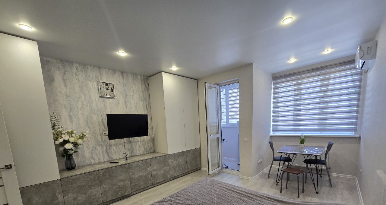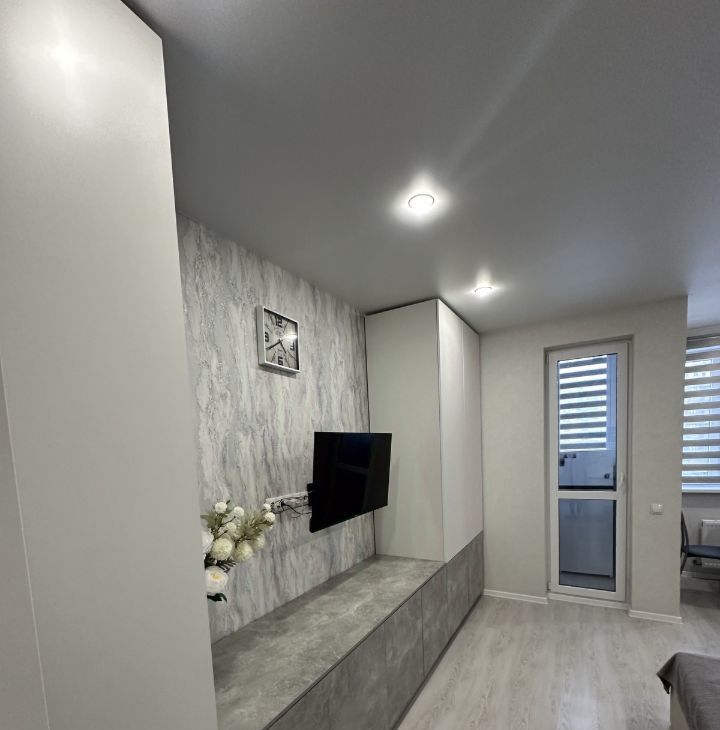Сдам квартиру студию в ЖК Дружный. Хороший новый ремонт, вся мебель и бытовая техника. Отлично организована система хранения вещей, балкон застеклён.