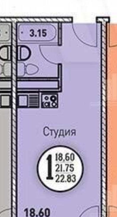 Студия Краснодарский край, Краснодар Круговая ул., 4Вк3 (26.0 м²)