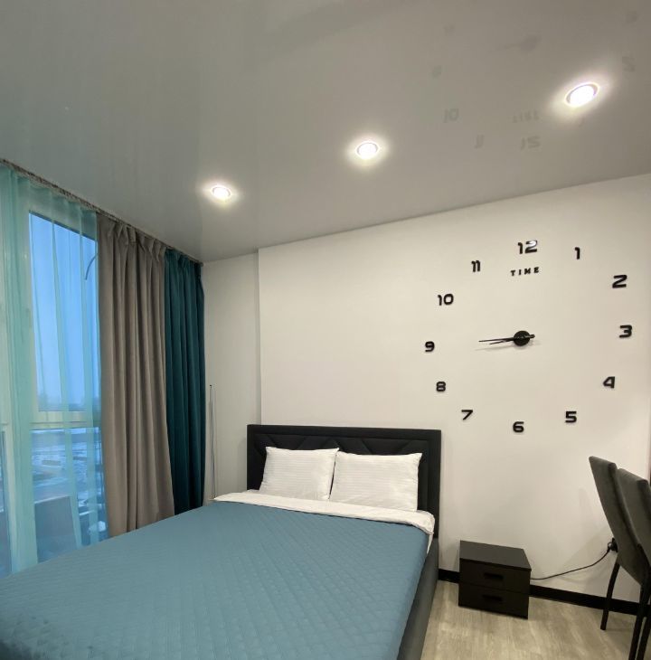 Спальная зона с большой кроватью 180*200, Smart телевизор, сплит система, шторы блэкаут, светильник, обогреватель.