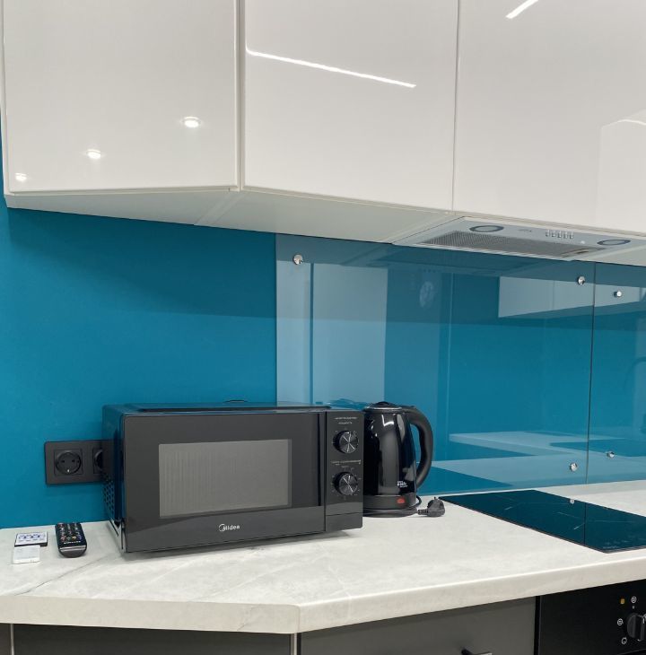 Кухня укомплектована качественной техникой и всем необходимым: холодильник, духовой шкаф, микроволновая печь, индукционная плита, чайник и вся необходимая посуда.