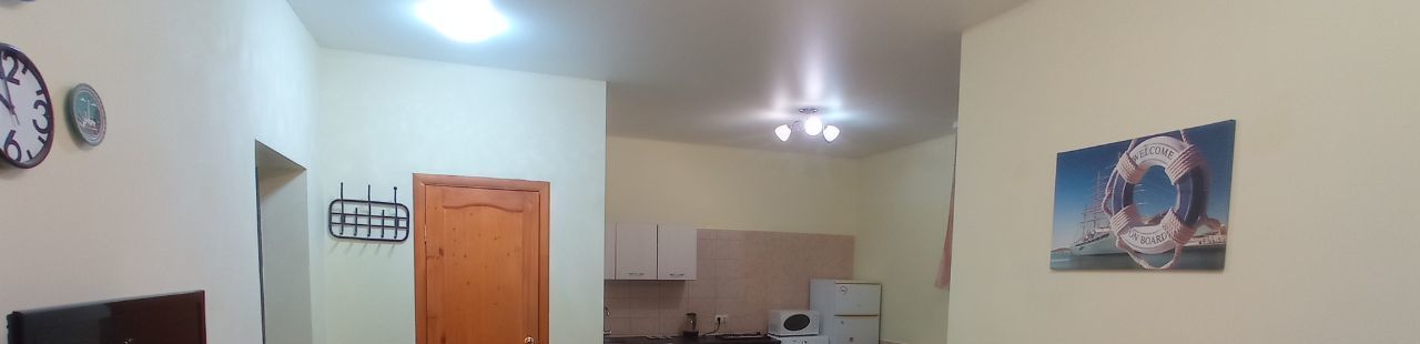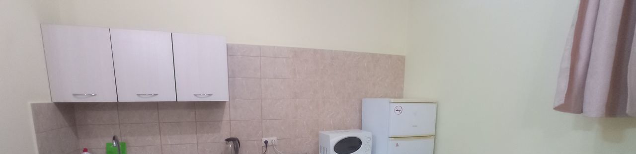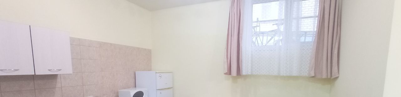 В квартире просторная комната, кухня, санузел. Сдается с мебелью и бытовой техникой: холодильник, стиральная машина, чайник, микроволновая печь, плита, вентилятор. Недавно сделан новый ремонт. Проведен высокоскоростной интернет. Квартира находится на цокольном этаже здания.