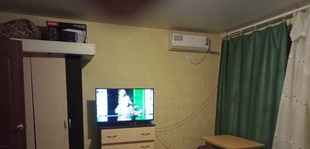 с косметическим ремонтом. Установлены все необходимые для комфортного проживания бытовые приборы: кондиционер, холодильник и стиральная машина. В комнате и на кухне есть мебель, поэтому можно сразу заселиться и жить без забот. Санузел совмещенный, оборудован ванной. Также имеется балкон, окна которого выходят на улицу, что обеспечивает хорошее естественное освещение.