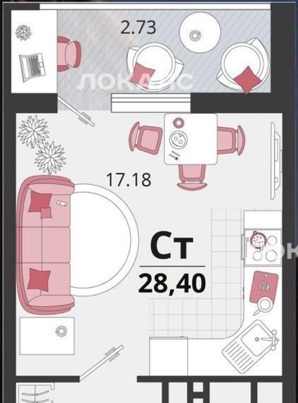 Студия Краснодарский край, Краснодар пос. Знаменский, ул. Природная, 10Бк21 (28.4 м²)