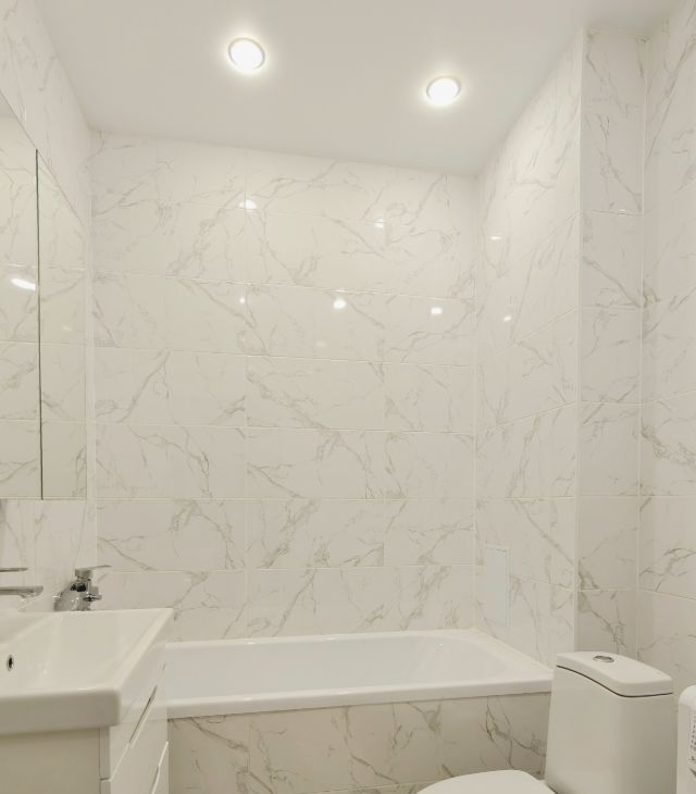 Санузел совмещенный, оформлен в светлых тонах, оснащен ванной и стиральной машиной. Красивые входные группы. В подъезде имеется пассажирский и грузовой лифты, а также подземная парковка. Закрытый двор без машин, отличные спортивные и детские площадки.
