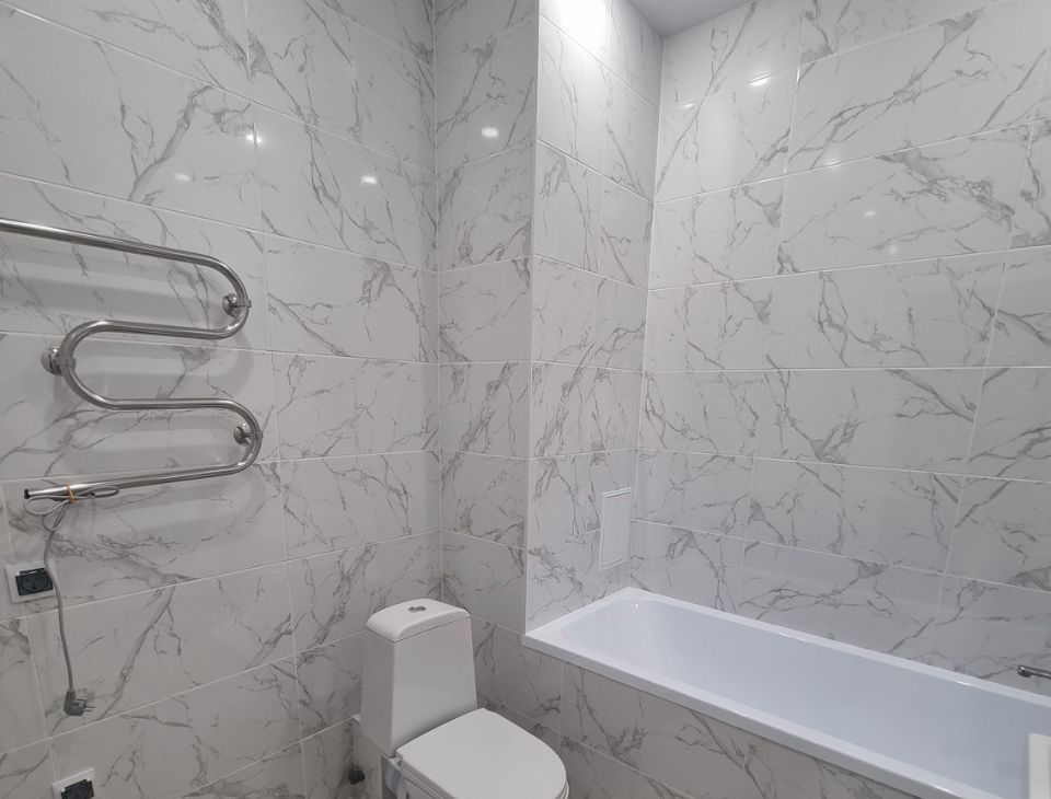 Внутри есть все необходимое для комфортного проживания: холодильник, стиральная машина, телевизор и шкафы (вся мебель и бытовая техника уже заказана). В санузле современная отделка и качественная сантехника.