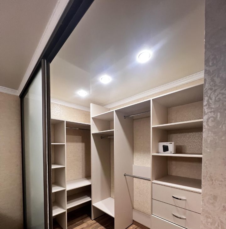 Уютная квартира, с большой гардеробной. в кухне есть плита, печь, посудомоечная машина, стиральная машина, холодильник.