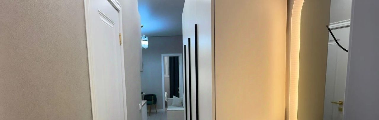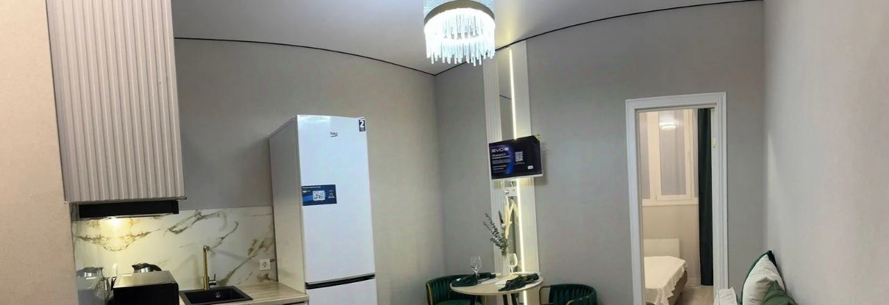 Квартира выполнена с дизайнерским ремонтом, что создаёт уютную и комфортную атмосферу. В квартире есть вся необходимая мебель как на кухне, так и в комнате. Для вашего удобства установлены кондиционер, холодильник, телевизор и стиральная машина. Ванная комната оборудована ванной и совмещена с санузлом.
