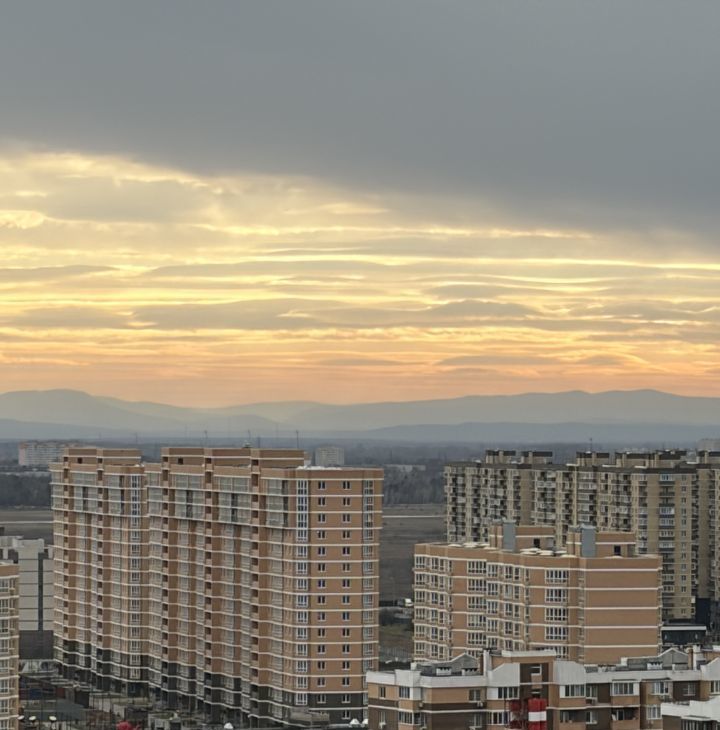 Уютная светлая видовая студия! Вид во двор, видны горы. Во дворе закрытая современная детская площадка с волейбольным и футбольным полями.