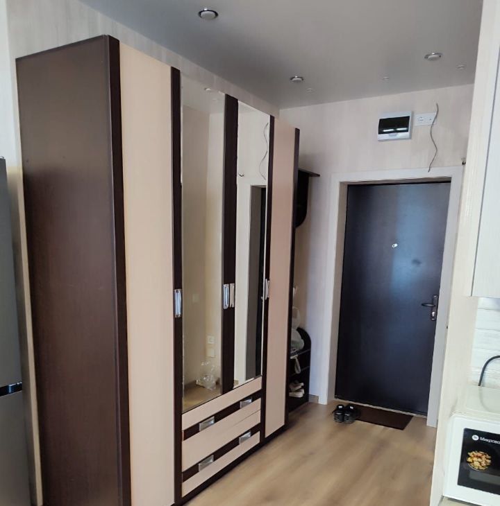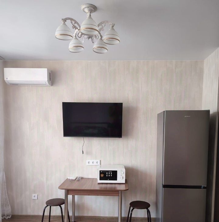 Квартира полностью укоплектована, в квартире есть плита, духовой шкаф, микроволновая печь, телевизор ,кондиционер, стиральная машина, двуспальная кровать, большой балкон, вместительный шкаф для хранения вещей с зеркалом, оборудованная прихожая.