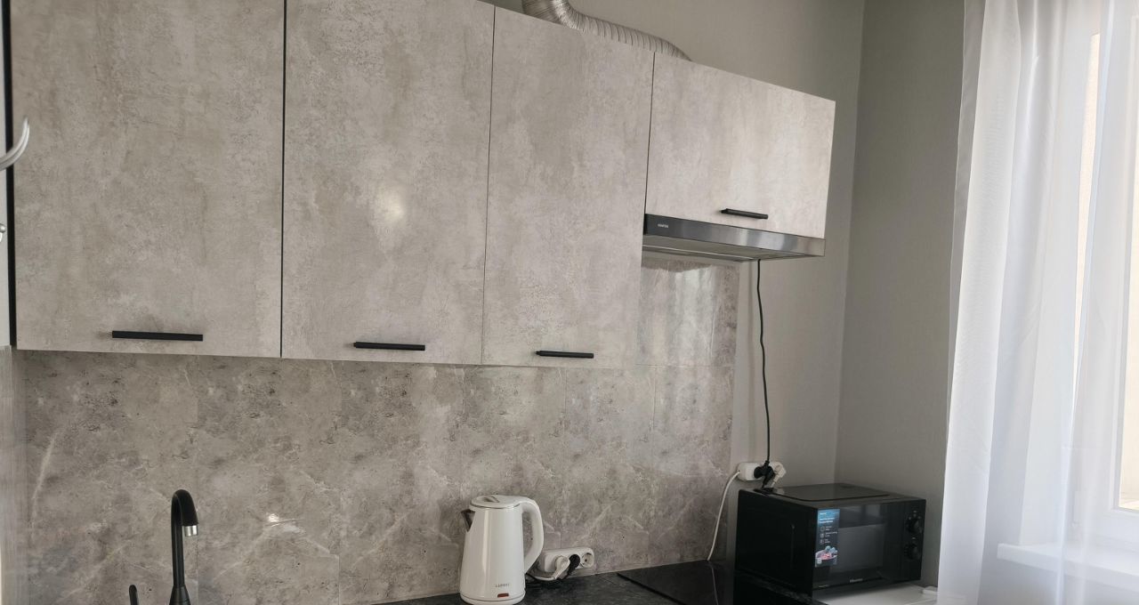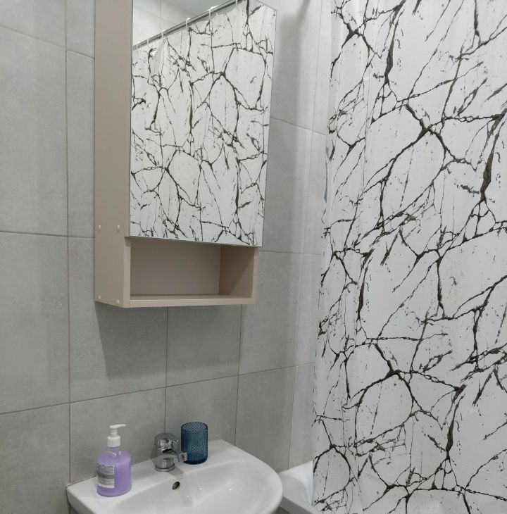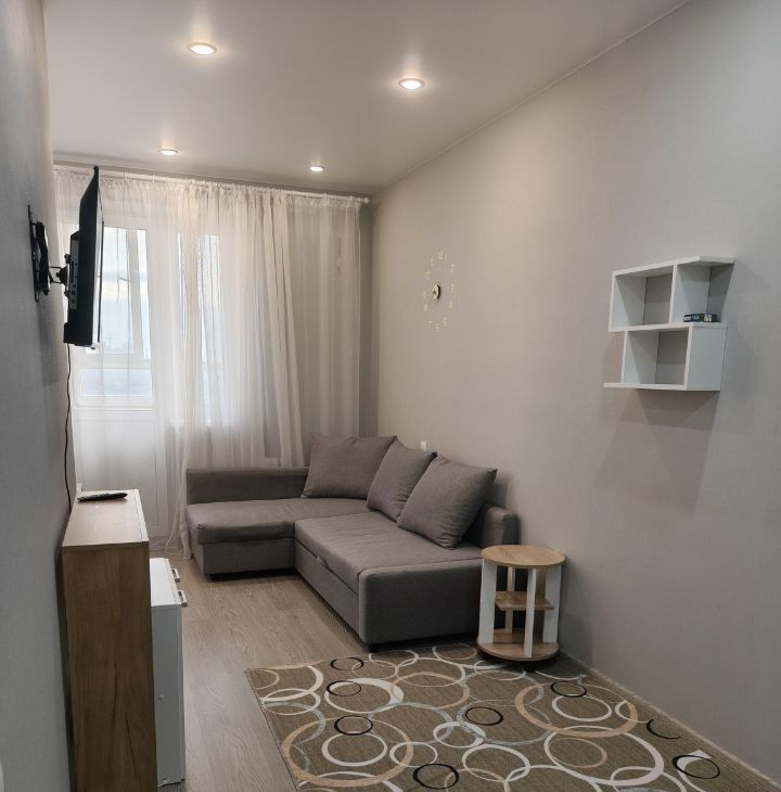Студия имеет косметический ремонт, оснащена необходимой мебелью на кухне и в комнате. Здесь есть вся необходимая техника для комфортного проживания: холодильник, стиральная машина и телевизор. Ванная комната оборудована ванной, что особенно приятно для любителей расслабляющих процедур.