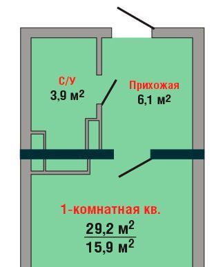 Студия Краснодарский край, Краснодар ул. Имени Симиренко, 71к1 (29.2 м²)