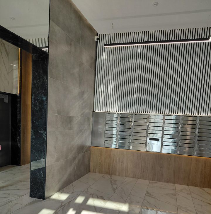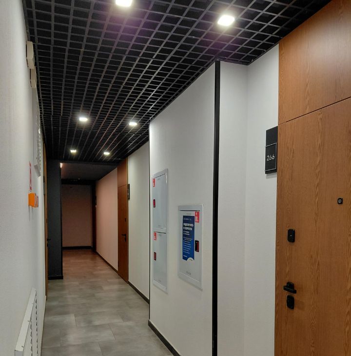 Установлена отличная сейфовая входная дверь, внешним видом соответствующая общему дизайну коридора. Предчистовая отделка, электрика проведена. Имеется балкон с прекрасным видом на озелененную велодорожку.