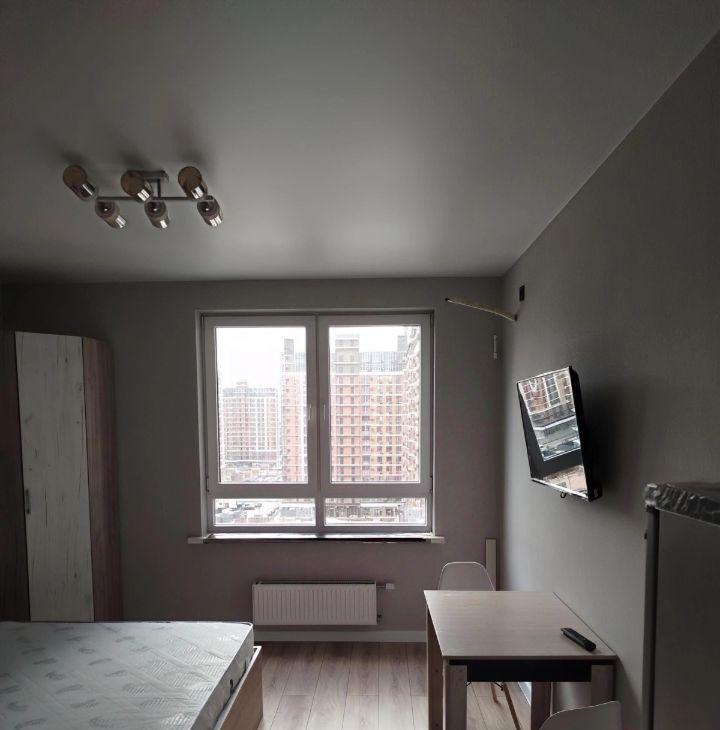 Сдается уютная студия площадью 22 кв. м на 10 этаже 19-этажного дома. Квартира с евроремонтом, потолки высотой 2.7 метра. Окна выходят во двор, поэтому вас не будут беспокоить шумные улицы.
