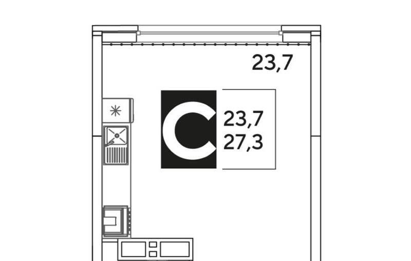Студия Краснодарский край, Краснодар ул. Ивана Беличенко, 86к3 (27.6 м²)