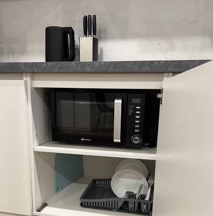Много места для хранения вещей еще предусмотрел, вся техника чтобы заехать и жить есть . Утюг, микроволновка, плита , машинка , чайник , пылесос, все что надо есть.