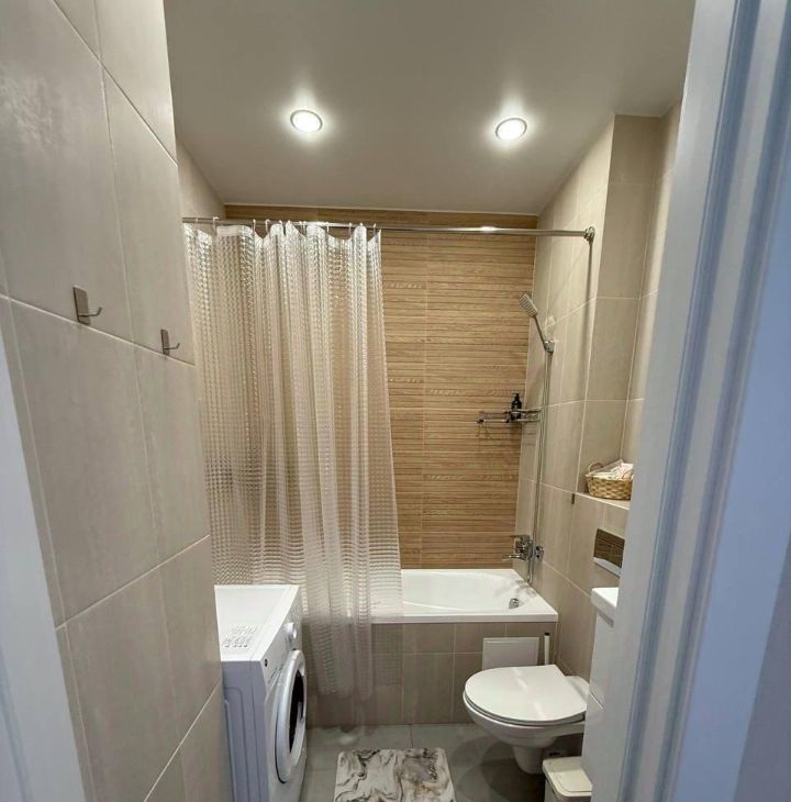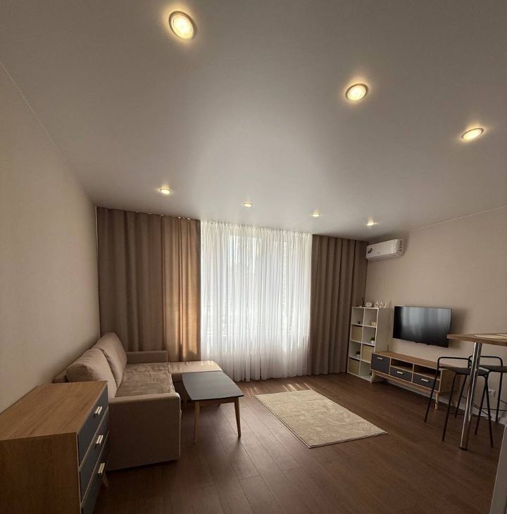 Квартира-студия, есть всё необходимое для проживания: посуда, варочная панель, духовой шкаф, телевизор, кондиционер, стиральная машина, утюг, гладильная доска, вайфай, удобный диван.