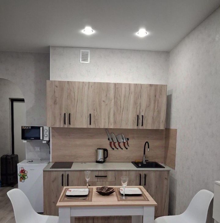 Сдаётся светлая и аккуратная квартира-студия, в которую можно заехать сразу с чемоданом — здесь уже есть всё необходимое для жизни.