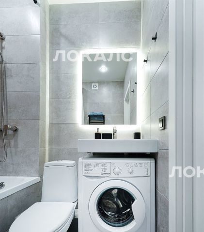 В ванной комнате стиральная машина.