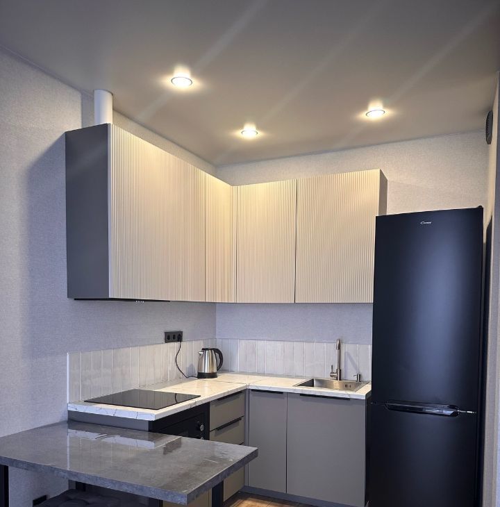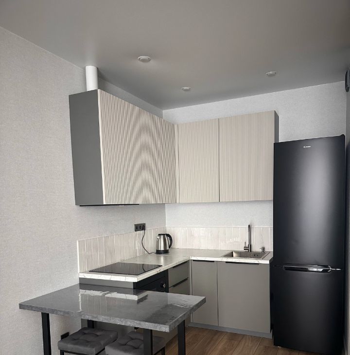 Квартира полностью укомплектована новой мебелью и техникой, что делает её готовой к немедленному заселению.