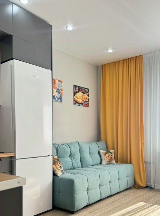 Новая уютная, светлая студия ждет своих жильцов.В квартире есть все необходимое для комфортного проживания. Хороший диван, кухня выполненная на заказ, вместительный шкаф и прихожая система. Заселяем на срок от 6 мес, по договору.