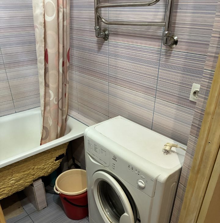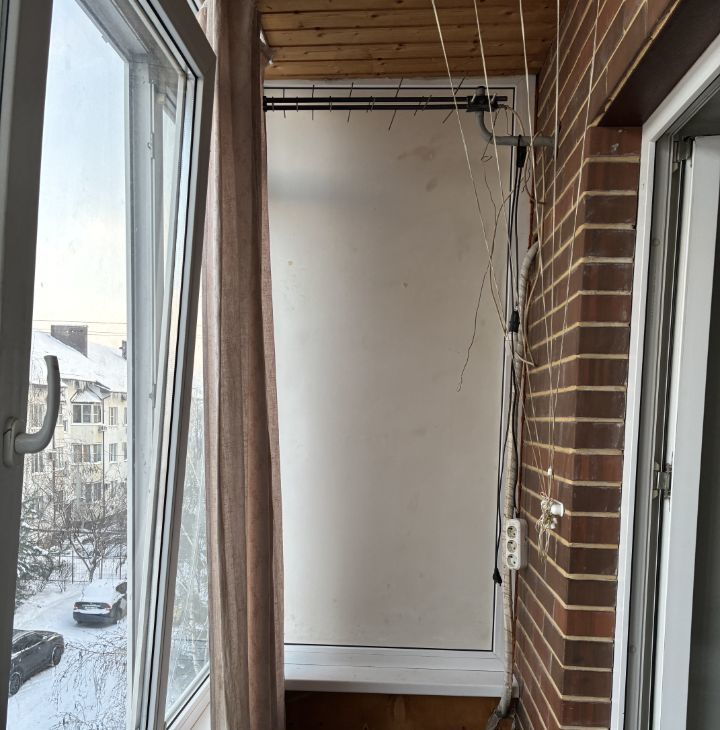 Кухня оборудована необходимой техникой, включая плиту и стиральную машину. Санузел совмещенный, оснащен ванной. Балкон застеклен, с видом на двор, где предусмотрена открытая парковка.