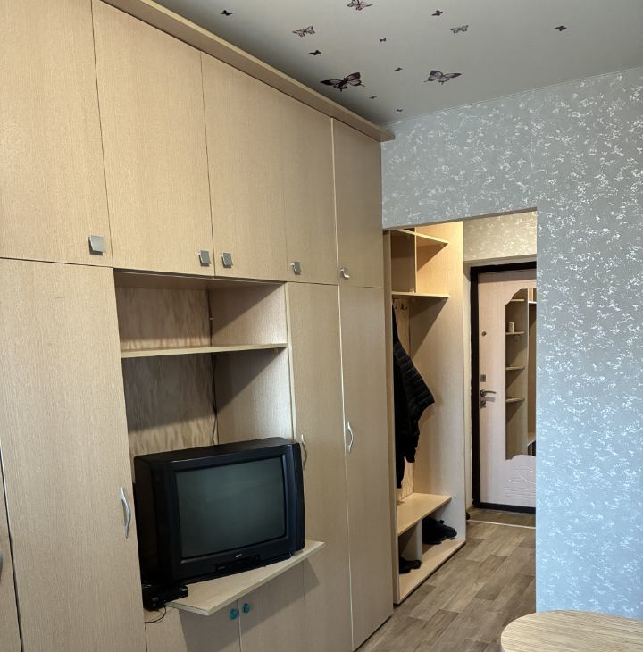 Сдается студия на длительный срок в монолитно-кирпичном доме. Дом расположен в тихом районе жк Британия , что обеспечивает спокойствие и уют. В квартире выполнен косметический ремонт, стены отделаны светлыми обоями, полы покрыты линолеумом. Из мебели имеются шкафы и диван, а также телевизор.