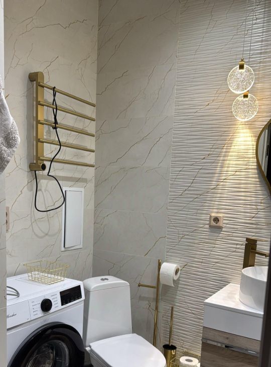 В квартире есть все необходимое для комфортного проживания: удобная мебель, современная техника, включая кондиционер, холодильник, телевизор и стиральную машину.