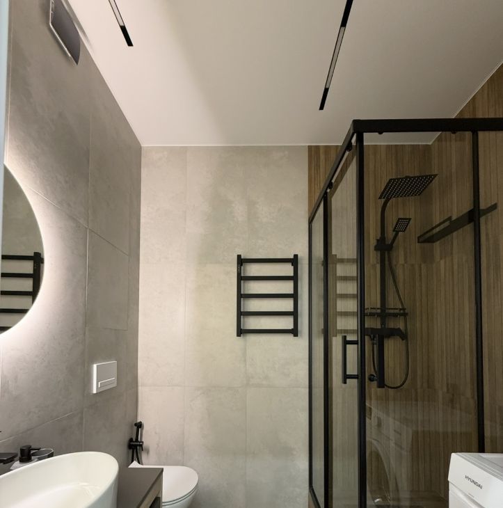 Теплый пол, гардеробная , смарт ТВ , обеденная зона , стиральная машина.