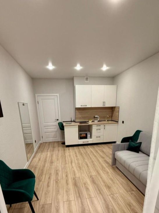 уютная квартира-студия с теплой энергетикой, для вашей счастливой жизни с мебелью и техникой. с развитой инфраструктурой.