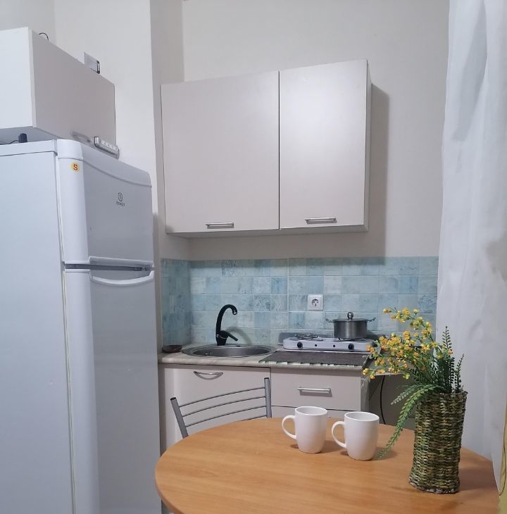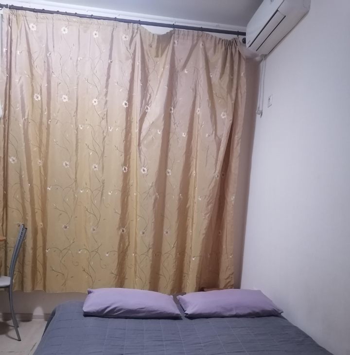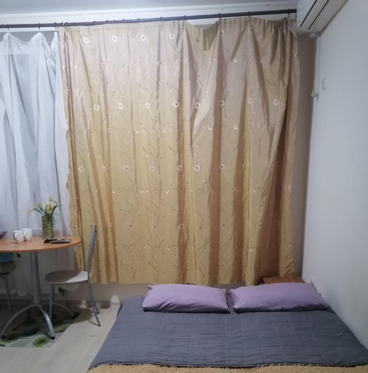 я собственник. студия в светлых тонах есть все необходимое двухсральная кровать. холодильник.телевизор.кондиционер .много магазинов .транспорт рядом в любую точку города