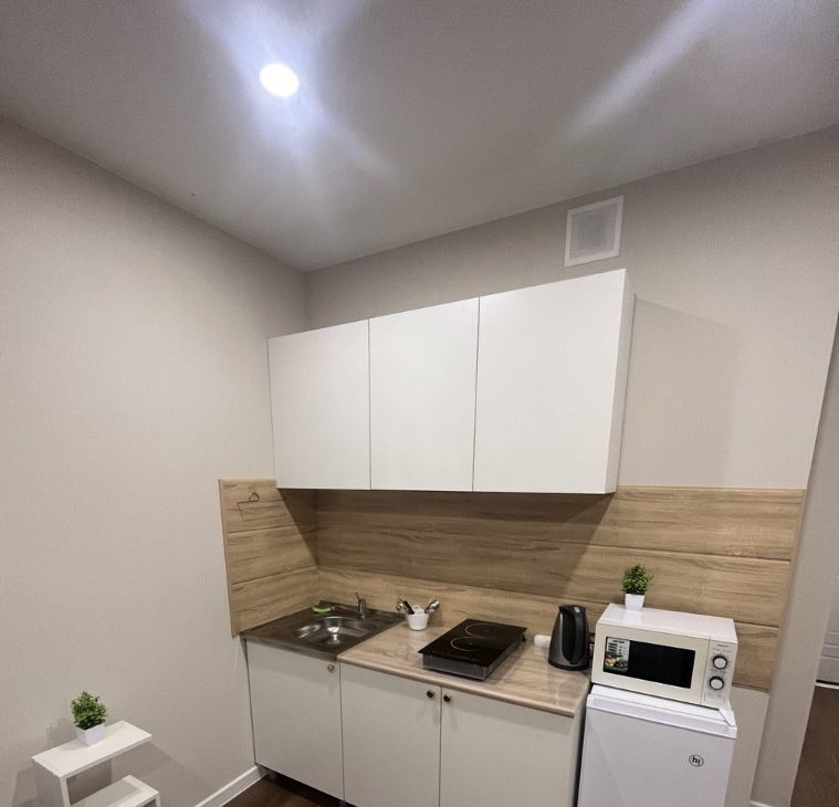 Студия светлая и уютная. Есть всеобходимое для проживания.