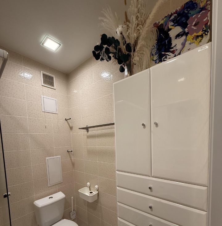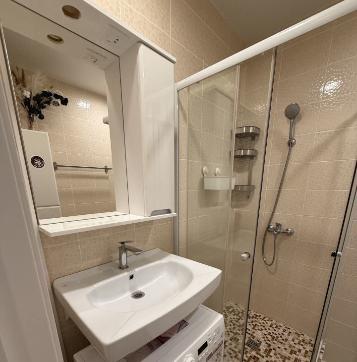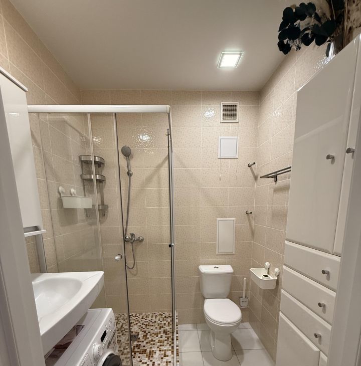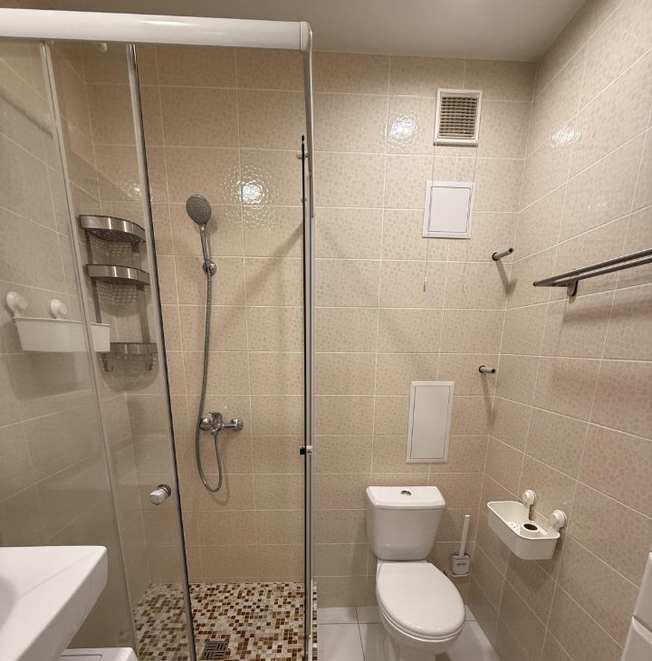 Ванная комната совмещенная, оснащена душевой кабиной и необходимой сантехникой.