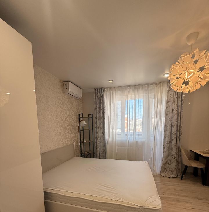Сдается уютная студия на девятом этаже монолитно-кирпичного дома 2016 года постройки.