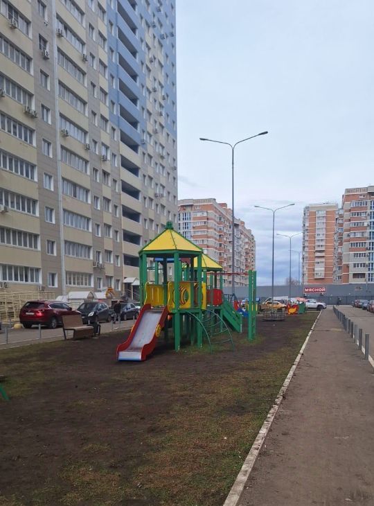 Парковка организована за шлагбаумом во дворе, а также имеется спортивная площадка для активного отдыха и две больших детских площадки.